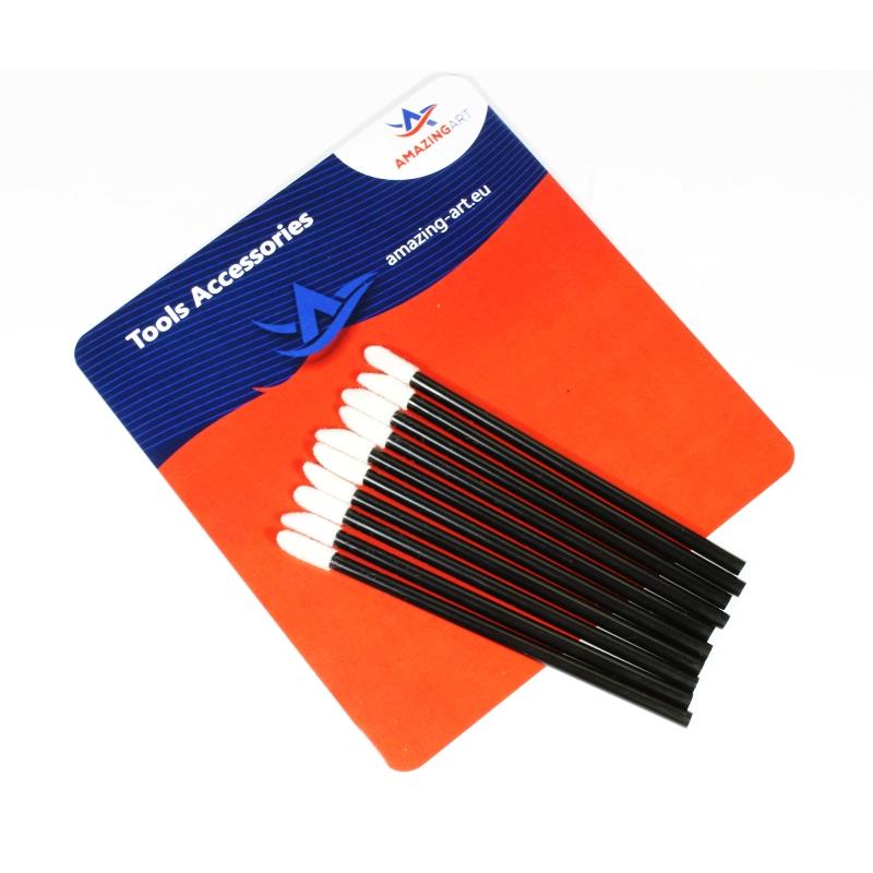 Opakowanie zawiera 10 miękkich, ściętych małych aplikatorów do suchych pigmentów.